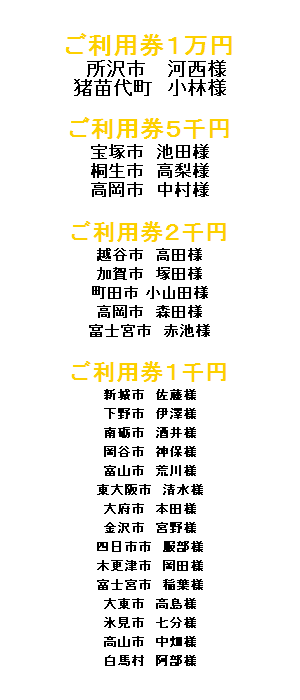 ご宿泊リピーターになろうキャンペーン! 24年度上半期 宿泊ご利用券 ご当選発表!! アンケートにご回答いただいたお客様から抽選 (上半期 4月〜9月分)