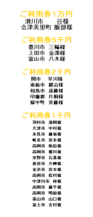 ご宿泊リピーターになろうキャンペーン! 24年度下半期 宿泊ご利用券 ご当選発表!! アンケートにご回答いただいたお客様から抽選 (下半期 10月〜3月分)