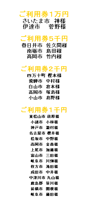 ご宿泊リピーターになろうキャンペーン! 27年度上半期 宿泊ご利用券 ご当選発表!! アンケートにご回答いただいたお客様から抽選 (上半期 4月〜9月分)