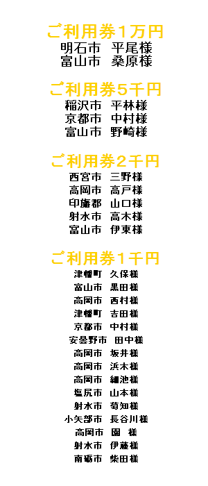 ご宿泊リピーターになろうキャンペーン! 29年度下半期 宿泊ご利用券 ご当選発表!! アンケートにご回答いただいたお客様から抽選 (下半期 10月〜3月分)