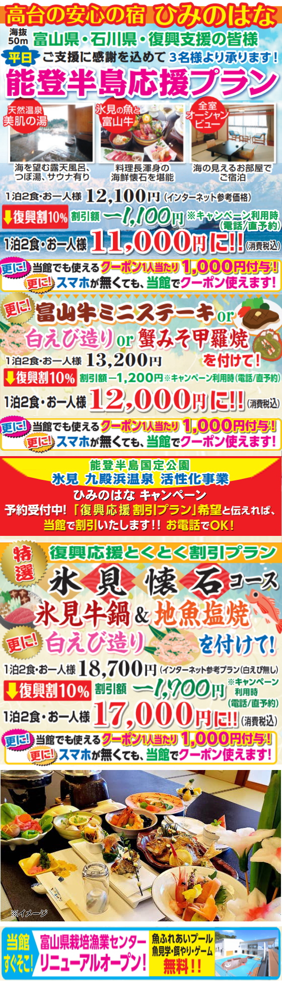 1泊2食付1万円〜の ひみのはなに泊まって